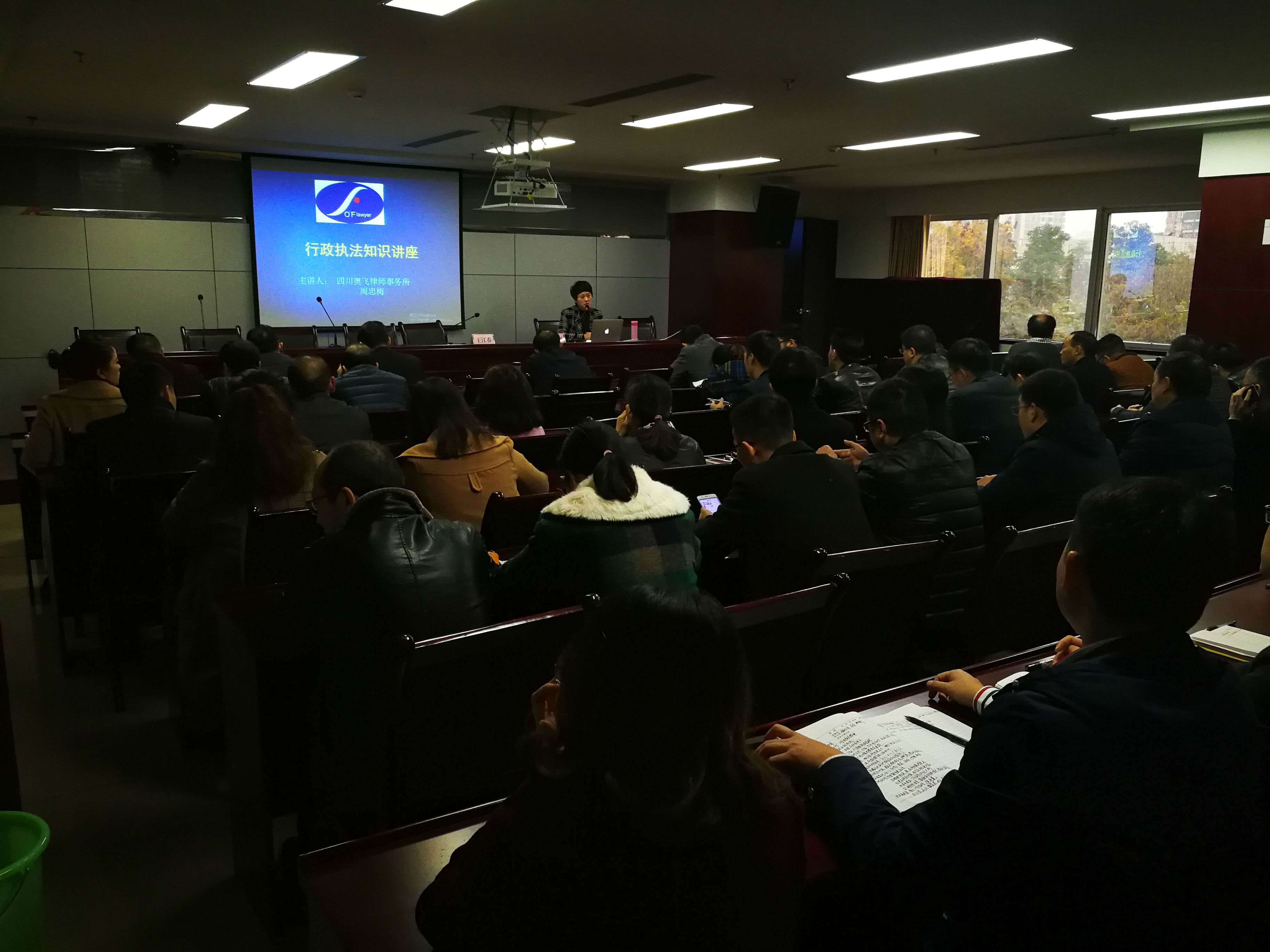 四川奥飞律师事务所主任周忠梅律师进行专题辅导,具体讲解了行政行为种类、行政复议与行政诉讼关系及如何应诉等,讲座结合典型案列,深入浅出地分析,生动形象,使干部职工全面了解依法行政法律知识,促进依法行政。